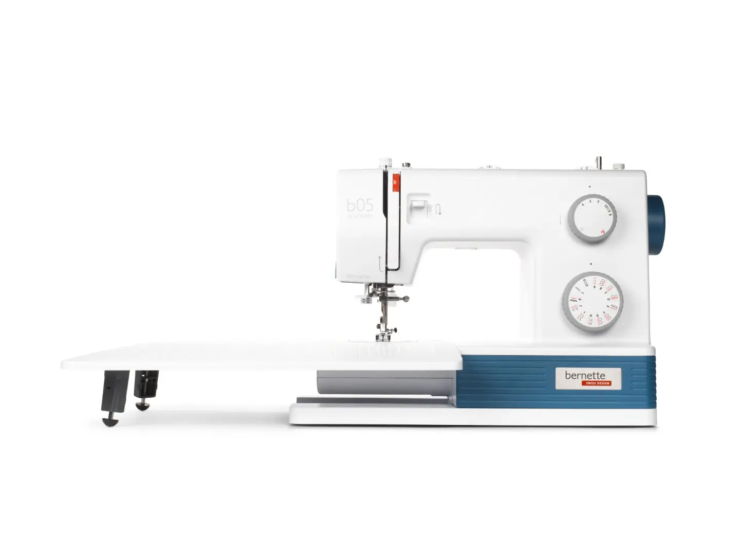 Equipped with a wide range of functions, 30 exclusive stitches and a fast motor, the b05 ACADEMY lets you quickly realize your wildest ideas. For tricky projects that require a slower pace, you can reduce the maximum sewing speed. It comes with an impressive 12 presser foot soles – for every sewing task, an easy-to-attach finger guard and even more sewing space with the large, convenient extension table. Who knows what ideas you‘ll have tomorrow? The b05 ACADEMY will always be there for you.