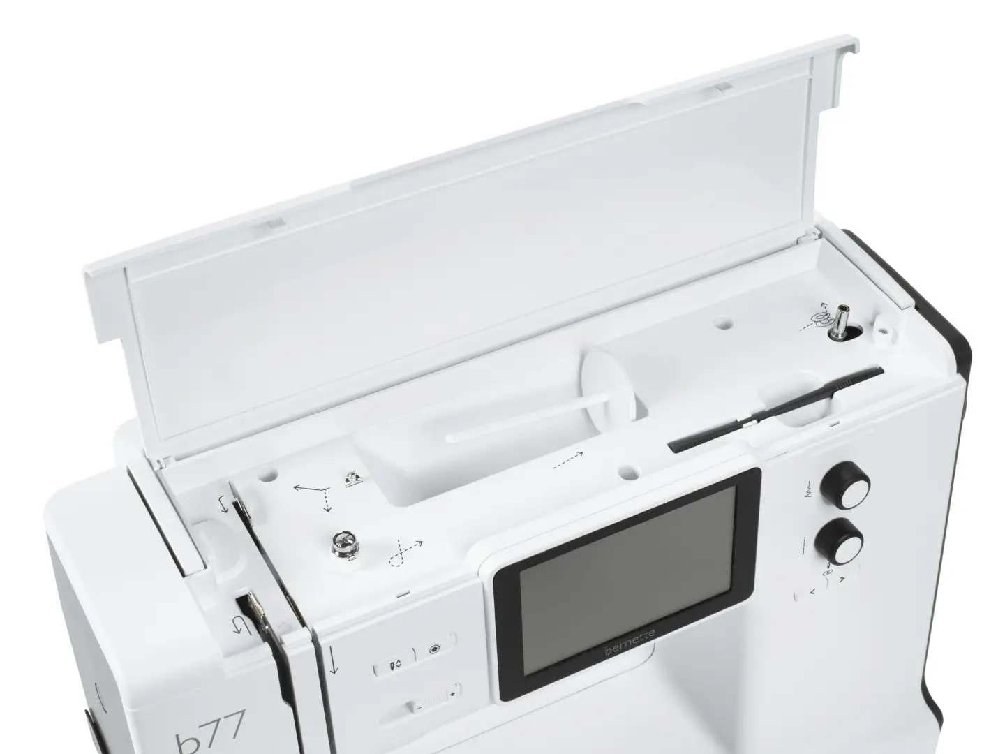 The b77 focuses exclusively on sewing and quilting. Get creative and sew your own clothes, quilts, or accessories. Discover new stitches and sewing techniques with this easy-to-use computerized sewing machine. Sew a delicate chiffon dress or a fine leather clutch. No worries, with the b77 it’s simple to work with all kinds of materials. Even quilt several layers with an impressive stitch quality. Enjoy the countless creative possibilities of the b77 and get inspired for your next make!